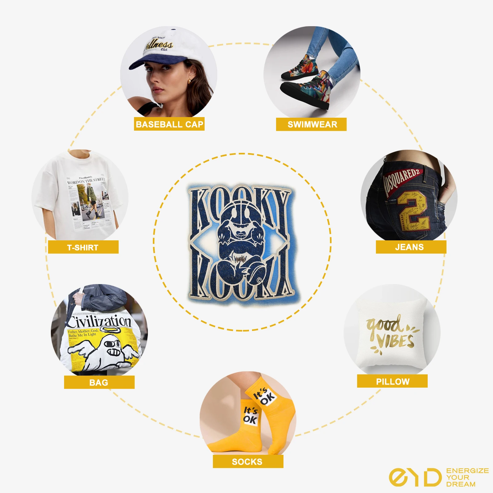 Looking to add a personal touch to your wardrobe or make a statement with your style? Look no further than EYD’s Original Custom T Shirt Designs Ready to Press Denim Transfer Logo DTF Heat Transfer Graphics. These unique and eye-catching transfers are the perfect way to customize your favorite tees and make them stand out from the crowd.